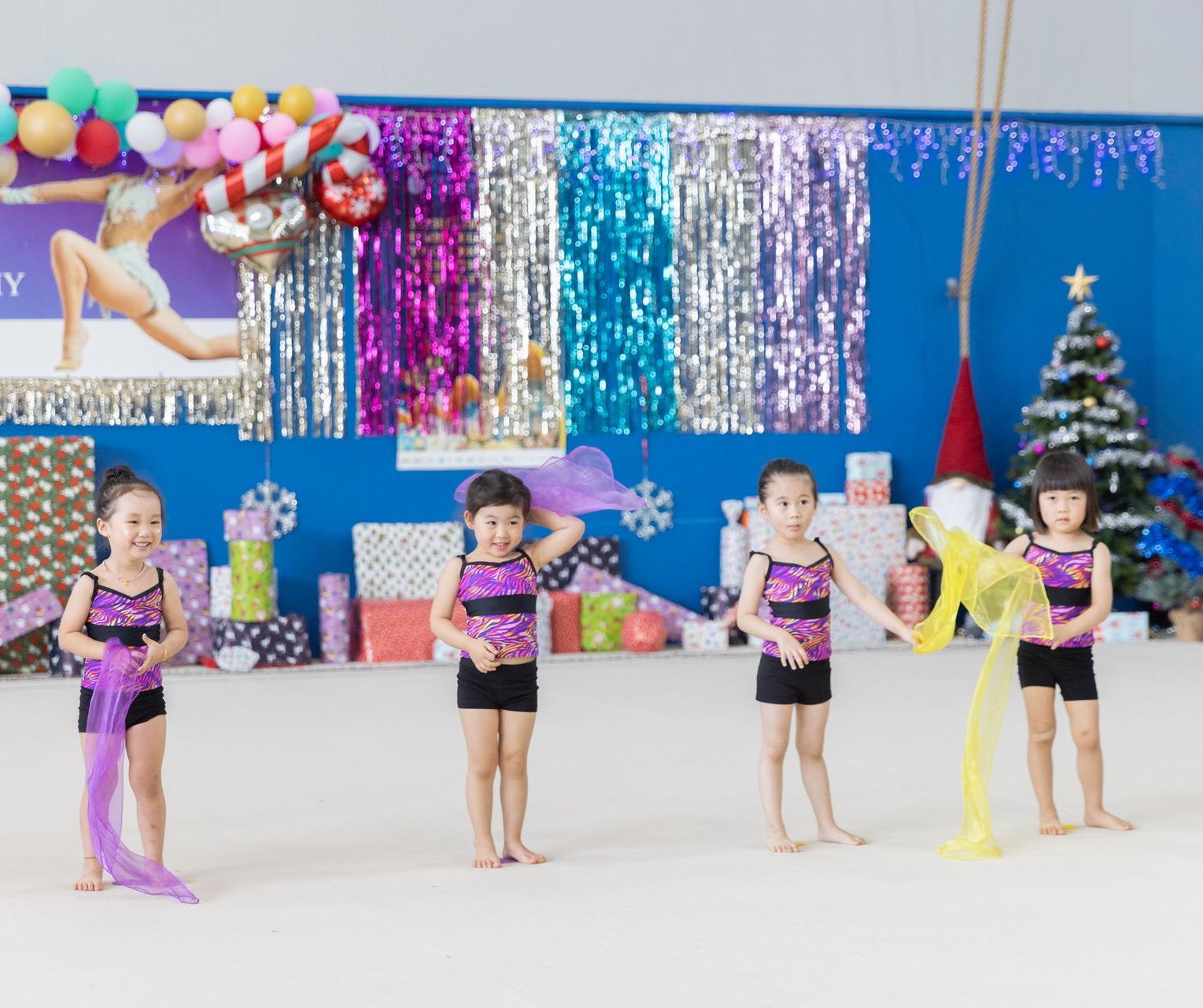 Our Kindy RG classes are designed for 3 to 4-year-old boys and girls. These are structured classes, without parent involvement, and are founded on child development principles. These classes introduce the basic skills and movement of gymnastics through fun and exciting activities which give the children the opportunity to optimise brain development and increase physical potential before they go to school. We provide classes that provide a safe environment for children to experience a wide range of movement activities and be encouraged to think, create, construct and solve problems with their own bodies. Educational research tells us that children learn best through exploring and discovering their abilities through physical activity. Our Kindy RG classes are 45 minutes long during which the kids participate in a warm-up, stretching, circuit-based activities, learning to use handheld apparatus, introduction into acrobatics, jumping on a trampoline, and much more. Our equipment set-ups are safe, stimulating and provide endless movement opportunities for children to play, explore and learn. This program offers children fundamental movement while developing co-ordination, self-esteem, physical, social and cognitive development.